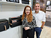 Andrea Corrales i Vesync Europa og Arne Hvidsten i Modino markerte på IFA sitt nye samarbeid i Norden om salg av varemerkene Cosori, Levoit, Etekcity og Pawsync. Foto: Stian Sønsteng