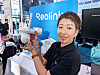 Ida Chen i Reolink med det nye batteridrevne overvåkningskameraet Altas PT Ultra, med opptak i 4K og lokal lagring på 512 GB. Batteriet på 20.000 mAh skal holde til åtte dagers kontinuerlig opptak, og 500 dager i standby-modus. Kameraet støtter Wi-Fi 6 pg 2,4/5 GHz, og 360 graders radius med smartdetektering. Foto: Stian Sønsteng