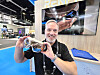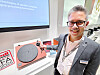 Bernt Sivertsen i GPBM viser den nye serien ladbare batterier fra GP Batteries; Recharge. – Disse er priset så lavt at de ikke koster stort mer enn engangsbatterier. Foto: Stian SønstengSe video