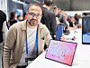 Kenan Ömer i Samsung med nye Galaxy Tab S11 Ultra 5G og Samsung Galaxy S25 FE. Nettbrettet er på 14,6 tommer, mobilen på 6,7. Foto: Stian SønstengSe video