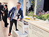 Davide Pavanati i Haier har en vaskemaskin som har 4 separate maskiner. To små til småvask, en med vanlig størrelse og også en i sokkelen. Alle kan benyttes uavhengig av hverandre. Foto: Stian Sønsteng