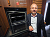 Hans Erik Standal i Electrolux lanserer stekeovn med pizzafunksjon. Ovnen oppnår en temperatur på 340 grader, og steker pizza på to minutter. Foto: Jan Røsholm