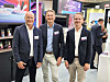 Jens Hoff (f. v.), Kenn Jensen og Rune Havem i Strong Scandinavia, som er en del av Skyworth-gruppen, viser på IFA TV-bokser i en rekke varianter. – I all beskjedenhet har vi verdens bredeste utvalg, sier Haven. Foto: Stian SønstengSe video