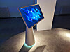 berøringsskjerm plassert på en kjegleformet base på hjul. Skjermen kan