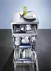 Oppvaskmaskinen rommer ti komplette standardkuvert. Toppkurven, Siemens varioDrawer, gir så plass for bestikk, salatbestikk og øvrige smådetaljer. Veldig skitne gryter kan dessuten vaskes sammen med ømtålelige glass takket være funksjonen intensiveZone som fordeler vanntrykk og temperatur mellom øvre og nedre kurv for å gi et ønskelig vaskeresultat. Vasketiden kan også effektiviseres med opp til 50 prosent gjennom funksjonen varioSpeed, uten at rengjøringskvaliteten påvirkes. Siemens har også utviklet verdens første doble spylearm. Takket være de to kryssende strålene dekker den doble spylearmen hver del av den øvre kurven, noe som garanterer optimal vannfordeling. Dette gir dessuten mer effektive oppvaskegenskaper og gnistrende ren oppvask.