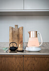 Det er lagt vekt på eksklusivt design med frostet glasskanne, og detaljer i kopper. Calm Kettle har kapasitet på 1,7 liter og temperaturkontroll fra 40 til 100 grader. Slik kan man velge rett vanntemperatur etter hvilken type te man vil brygge, for å bevare smakene. Vannkokerens belysning skifter i seks ulike fargetoner gjennom koketiden og som sømløst glir over til en varm hvit glød under hold-varm-funksjonen som holder vannet varmt i 15 minutter. Med et trykk på det digitale displayet kan man velge mellom fem typer beroligende lyser som skal senke stressnivået under vannkokingen. Pris: 1.600,-